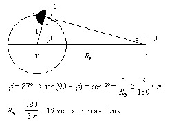 Aristarco fu il primo ad effettuare una stima delle distanze della Luna e del Sole dalla Terra, partendo dalla considerazione che, quando la Luna è esattamente all'ultimo quarto, si trova sul vertice dell'angolo retto di un triangolo rettangolo, agli altri vertici del quale sono collocati la Terra e il Sole.