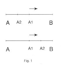 Il primo argomento contro il moto, detto la dicotomia, parte dalla considerazione che un mobile non può mai arrivare al termine della traiettoria, perché prima di percorrere il percorso intero deve percorrerne la metà. Questo testo è stato variamente inteso (fìg. 1).