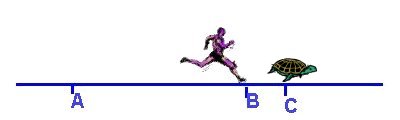 Nel frattempo però la tartaruga sarà passata in A1 e, quando Achille sarà giunto in A1, essa sarà ìn A2 e così via. Secondo Aristotele questo argomento era identico al precedente, con la sola differenza che qui non si ha una serie di dimezzamenti, ma gli spazi che dividono Achille dalla tartaruga diventano sempre più piccoli secondo la serie 1/n, 1/n2 , 1/n3... .
